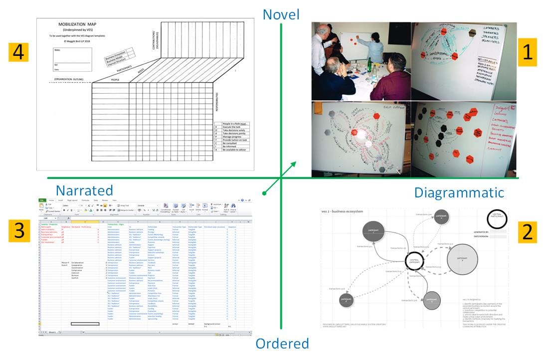 I will cover each option in detail in subsequent HOW? posts, commencing with the Type 1, "Diagrammatic/Novel" way. This is used to outline the Participants' understanding of the current business model of their part of the organization, sometimes known as a Descriptive VES diagram.